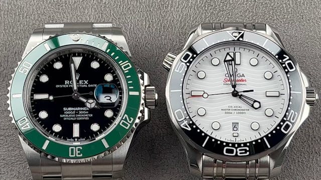 Rolex vs. Omega returns to Watchbox Reviews! This week, it’s the Rolex Submariner "Cermit" 126610LV versus the Omega Seamaster 300M "White Ceramic" 210.30.42.20.04.001.